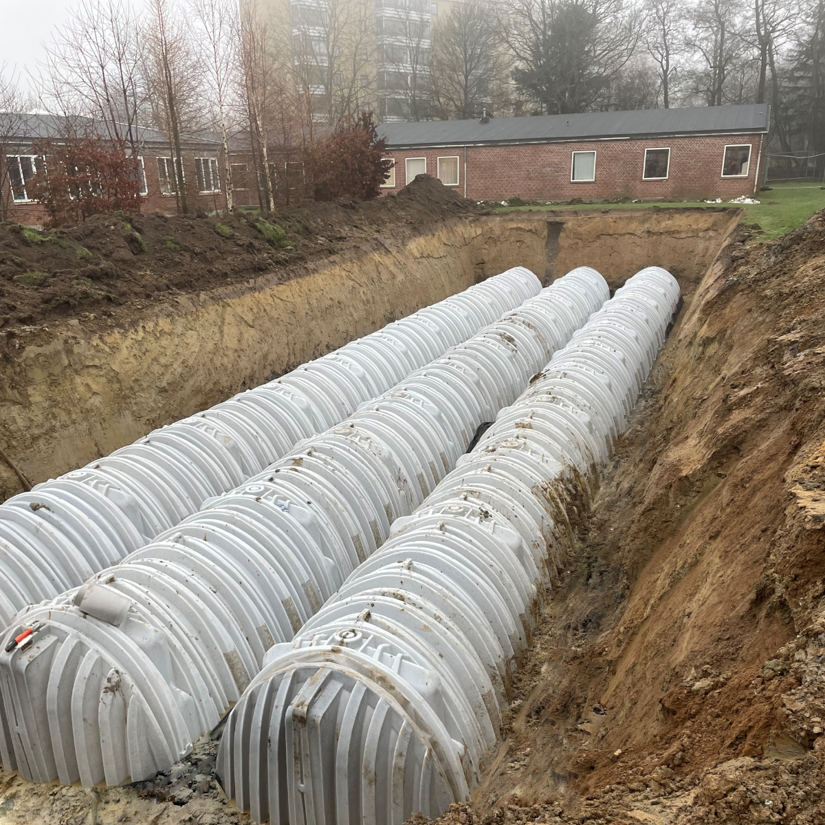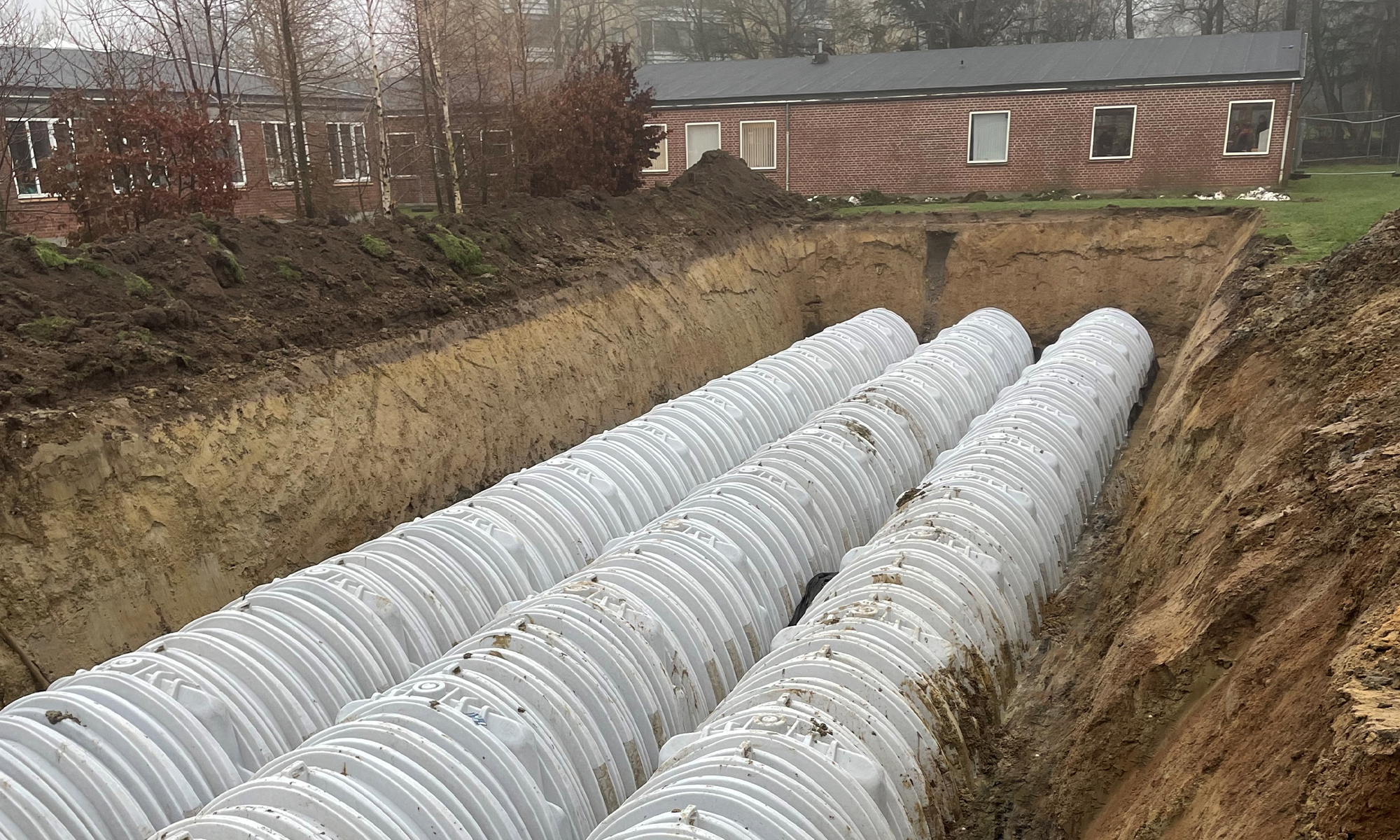 Med denne løsning har Novaskolen nu en robust og fremtidssikret regnvandshåndtering, der beskytter både bygninger og udearealer mod oversvømmelser.
