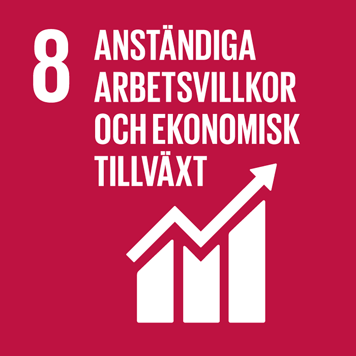Vi säkerställer anständiga arbetstillfällen och ekonomisk tillväxt, med särskilt fokus på delmålen 8.5 och 8.8.